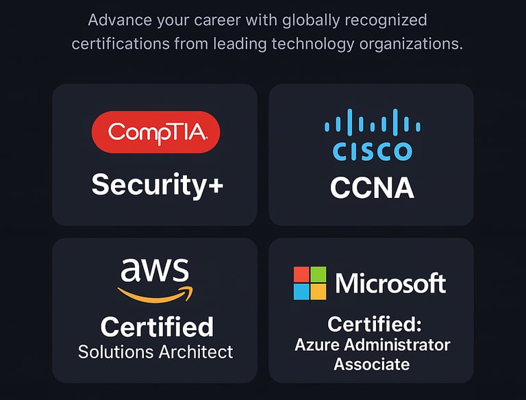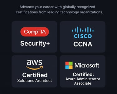 At ITCertifa, we specialize in empowering professionals through world-class IT training, globally recognized certifications, and discounted exam vouchers. Our mission is to help learners and organizations bridge the gap between skill and success across CompTIA, Cisco, AWS, Microsoft, and other leading certifications
